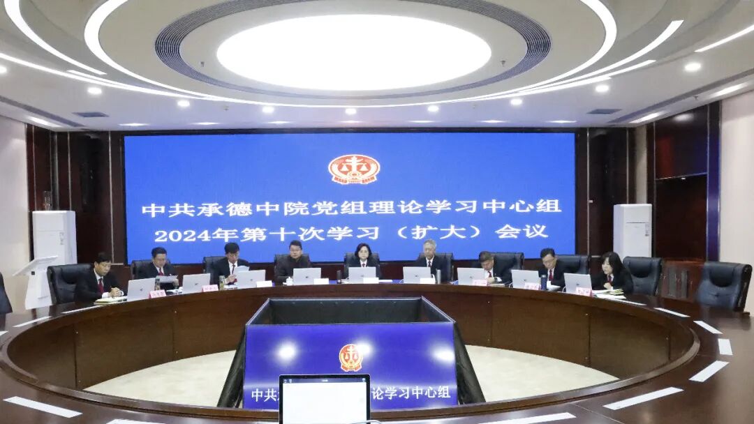 10月25日上午,承德市中级人民法院召开党组理论学习中心组2024年第十次集中学习(扩大)会议。院党组书记、院长蔺静主持会议并讲话。在家院领导出席会议,各部门负责同志列席会议。市委市直机关工委派员列席会议。